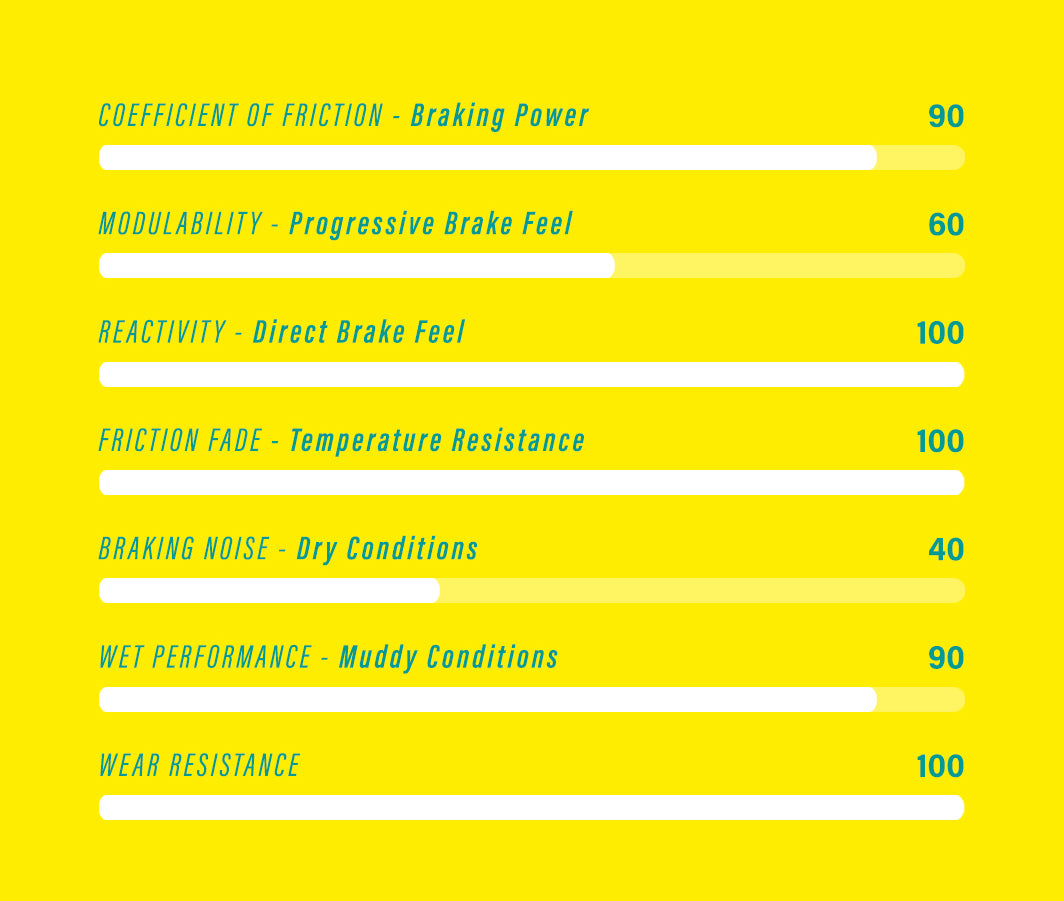 The metallic pads provide the most direct brake feel and powerful bite, even in colder temperatures, thanks to advancements in both the compound and the production process.