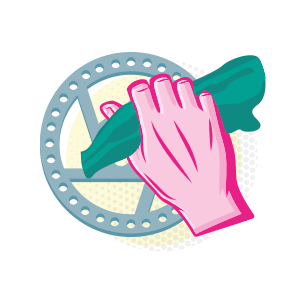 The discs must be cleaned with specific products, normally alcohol-based products, making it possible to remove grease or oil residues and ensure that the new brake pads are not contaminated on their first use.